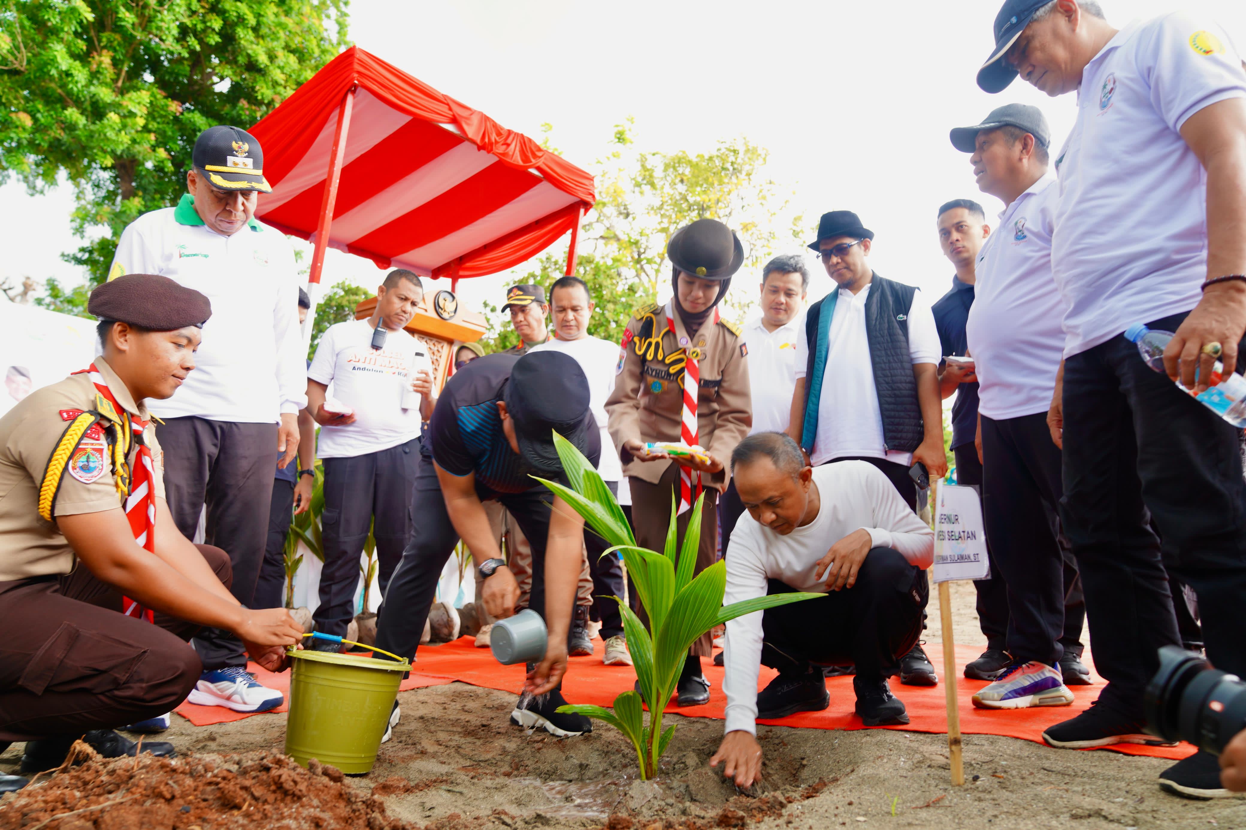 Gubernur Sulawesi Selatan, Andi Sudirman Sulaiman, melakukan penanaman pohon kelapa di Kokolohe, Desa Mekar Indah, Kecamatan Buki, Ahad (30/11), sebagai bentuk dukungan nyata terhadap Program GEMERLAP (Gerakan Menanam Lima Juta Kelapa) yang dicanangkan Pemerintah Kabupaten Kepulauan Selayar.