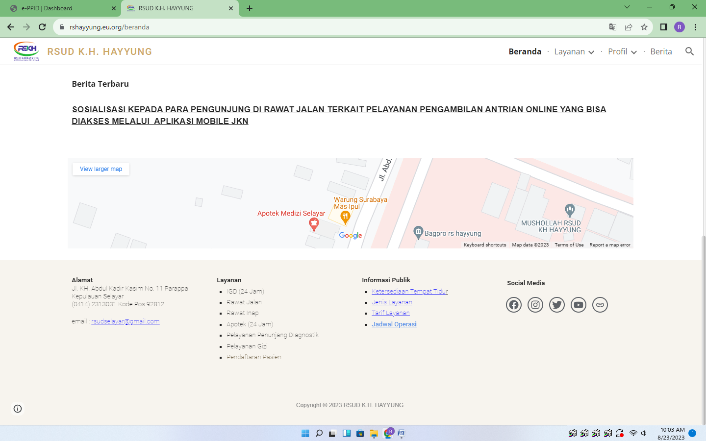 Ketersediaan tempat tidur, Jenis Layanan, Tarif Layanan, Jadwal Operasi
