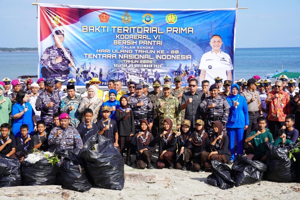 Menyambut peringatan Hari Ulang Tahun (HUT) Tentara Nasional Indonesia ke-80 Tahun 2025, Komando Daerah Angkatan Laut VI (Kodaeral VI) menggelar aksi kemanusiaan besar-besaran di Kabupaten Kepulauan Selayar, Sulawesi Selatan. Berbagai kegiatan Bakti Sosial (Baksos) dan Bakti Kesehatan (Bakkes) dilaksanakan menyentuh langsung kehidupan masyarakat pesisir, sebagai wujud nyata kehadiran TNI di tengah rakyat, Kamis (25/09/2025).